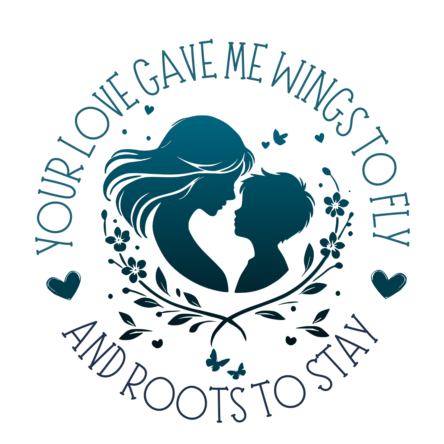 This beautiful silhouette captures the unbreakable bond between a mother and her son, their foreheads gently touching in a tender moment of love and connection. The elegant design showcases their upper bodies, surrounded by a delicate garland of flowers, symbolizing the beauty and strength of their relationship.